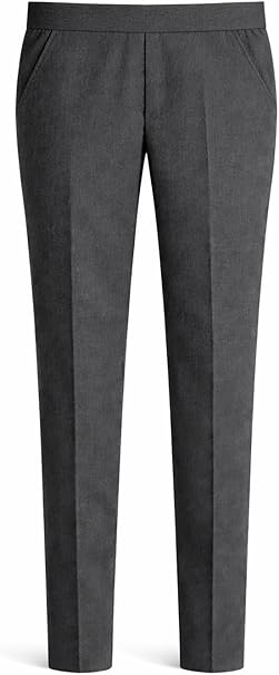 Boys School Uniform Trousers Pull Up,Plain Regular Slim Fit Pants Half Elastic Waist, Lightweight Durable School Wear